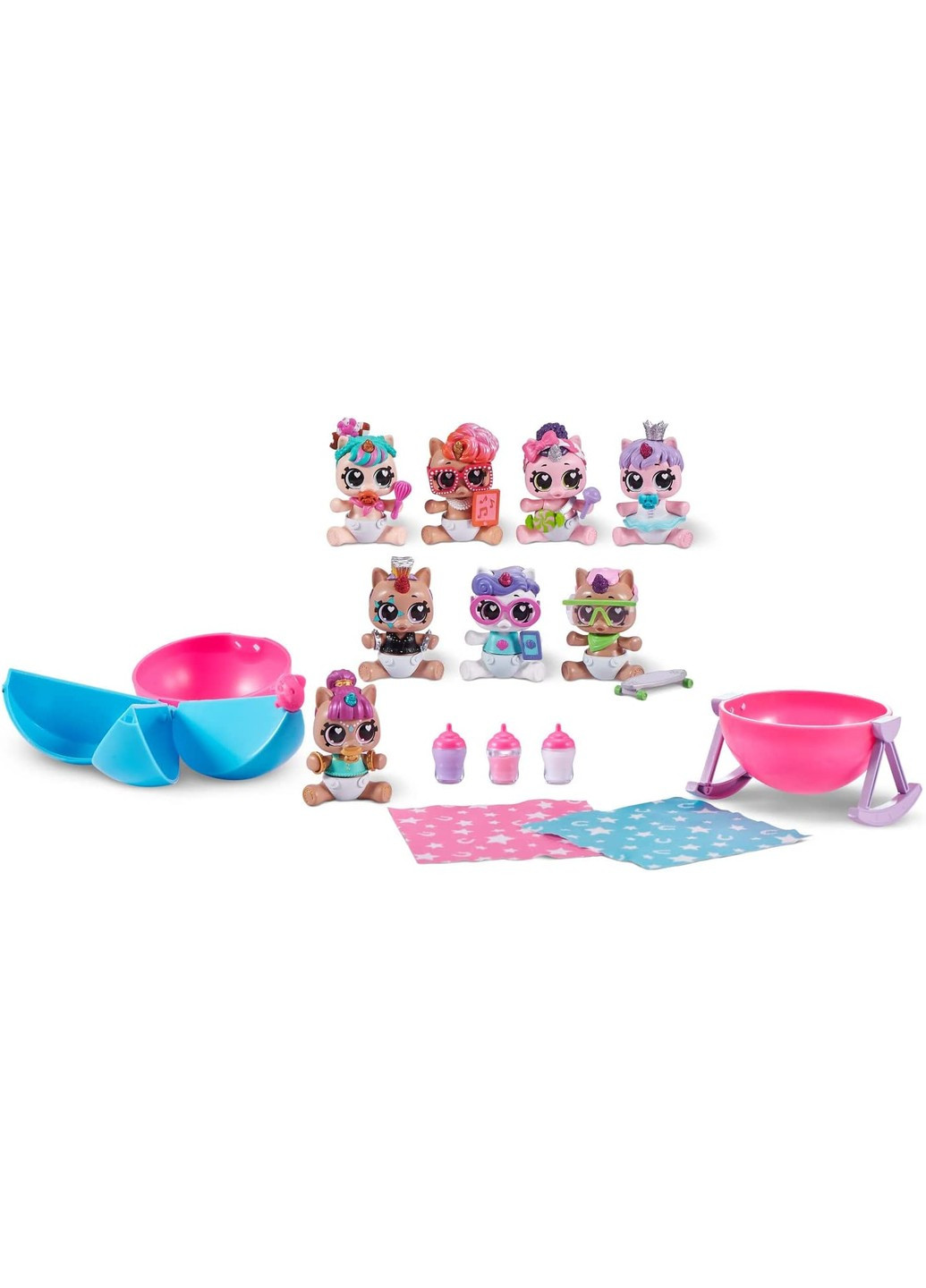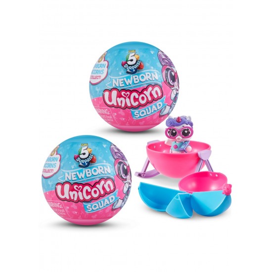 5 Surprise Newborn Unicorn Squad este cea mai noua echipa din bloc! Aceste dragalase magice vin cu atat de multe surprize de dezvaluit. Deschideti capsula surpriza pentru a gasi unicornul nou-nascut ?i tot ce aveti nevoie pentru pepiniera perfecta. Odata ce iti despachetezi unicornul, magia continua sa curga cu noua capsula convertibila transformandu-se intr-o baie sau o casuta, accesoriul obligatoriu pentru to?i nou-nascutii!