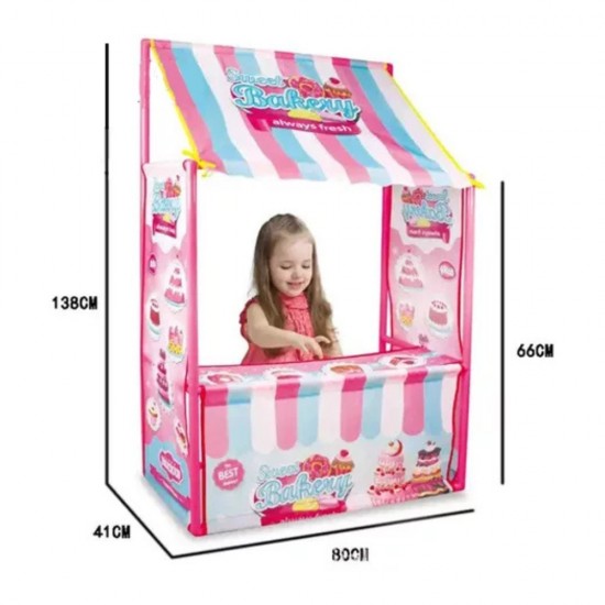 Cortul este usor de montat si de demontat, ceea ce il face ideal pentru a fi folosit atat acasa, cat si in vacante sau la petreceri. Un cadou perfect unde fetitele se vor bucura de ore intregi de distractie in "patiseria" lor personala.