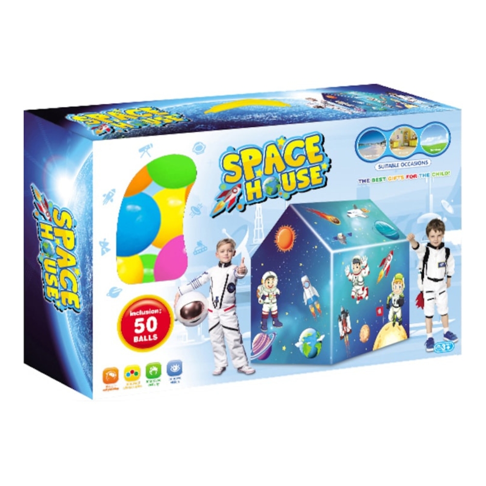 Un loc fascinant pentru micii exploratori care viseaza la aventuri interstelare! Cu un design inspirat din tema spatiului cosmic, acest cort cu 50 de mingi colorate ofera o atmosfera magica, plina de planete, stele si nave spatiale, unde te poti juca si imagina calatorii prin univers.