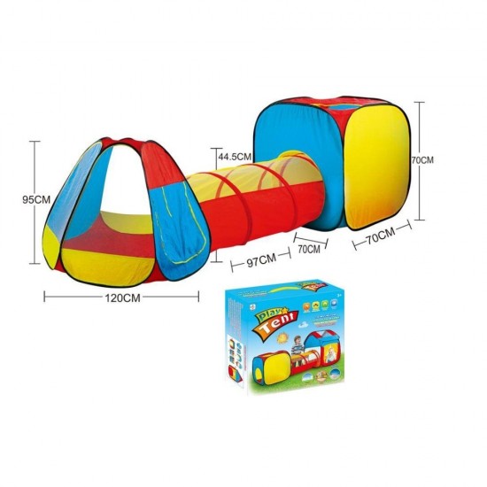 O alegere ideala pentru joaca in aer liber sau pentru a crea un spatiu de distractie in interior! Acest set include trei componente principale - un cort principal, un tunel de legatura si un alt element care poate fi un alt cort mic sau o extensie a spatiului de joaca, toate avand un design vesel si colorat.