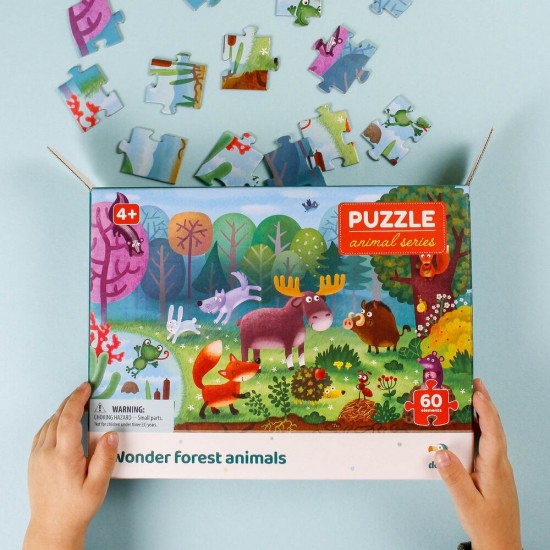 Imediat ce ploaia din curte s-a terminat si soarele a stralucit pe cer, animalele s-au dus in poienita padurii sa se incalzeasca si sa se odihneasca. Lupul si iepurasul au aranjat o cursa - care dintre ei va fi primul care va ajunge la lac si va saluta broasca. Facem lumea inconjuratoare magica si stralucitoare cu ajutorul acestui puzzle care va deveni preferatul micutilor.