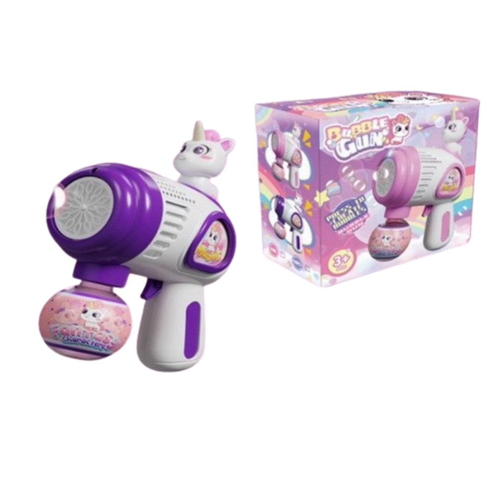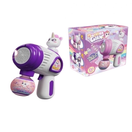 Acest pistol adorabil, cu design inspirat de un unicorn, iti permite sa creezi baloane de sapun intr-un mod simplu si rapid, oferind o experienta vizuala fascinanta. Setul include o solutie de 100 ml pentru a umple pistolul si este disponibil in diverse culori vesele, care vor atrage cu siguranta atentia.