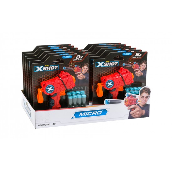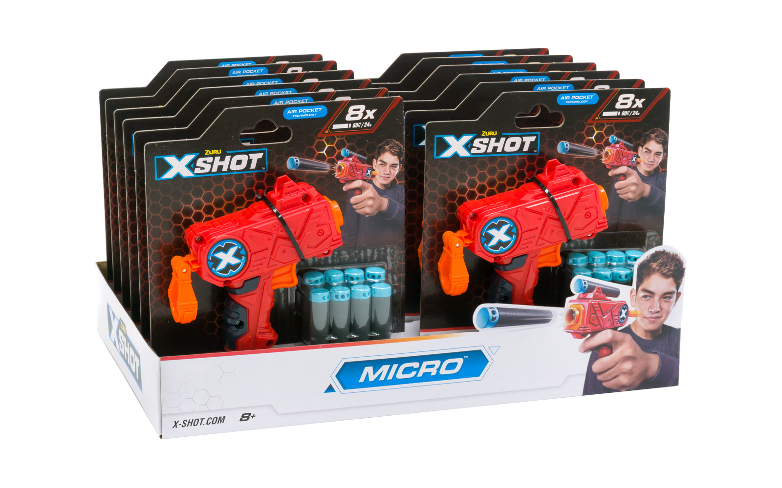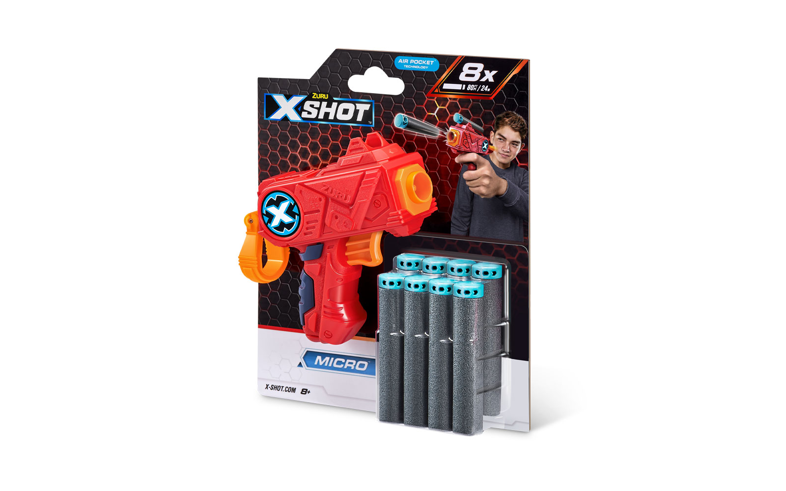 X-Shot Excel Micro are o capacitate de 1 sageata si spatiu de stocare pentru un dart suplimentar deasupra pentru reancarcare rapida si vine cu 8 cartuse pentru a va mentine incarcat toata lupta.
