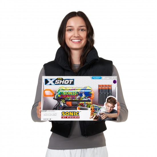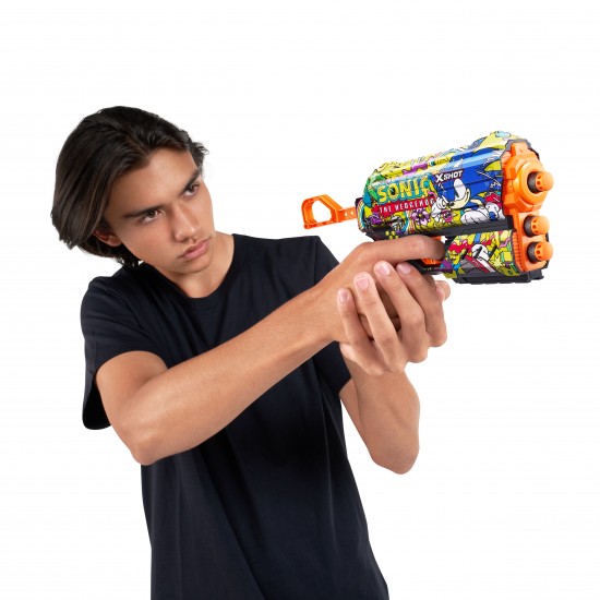 Alege Blasterul X-Shot Skins Flux,Sonic Hyper Spike si alatura-te luptei! Acest blaster nu trebuie sa lipseasca din colectia ta. Are stocare inferioara pentru sageti, astfel incat sa il puteti reincarca rapid si sa va intoarceti in lupta. X-Shot Skins dispun de noua tehnologie Air Pocket pentru impuscaturi mai rapide, mai lungi si mai precise.