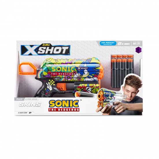 Pistol X-Shot Skins Flux, Sonic, Hyper Spike, 8 cartuse