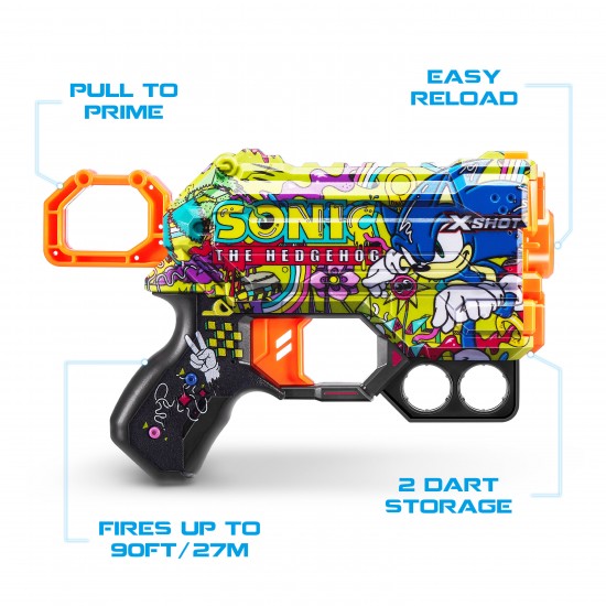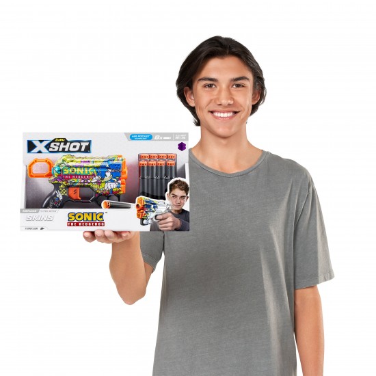 Alege Blasterul X-Shot Skins Menace,Sonic Hyper Spike si alatura-te luptei! Acest blaster nu trebuie sa lipseasca din colectia ta. Are stocare inferioara pentru sageti, astfel incat sa il puteti reincarca rapid si sa va intoarceti in lupta. X-Shot Skins dispun de noua tehnologie Air Pocket pentru impuscaturi mai rapide, mai lungi si mai precise.