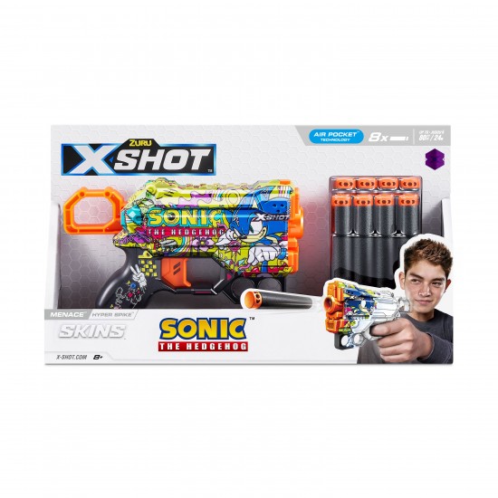 Pistol X-Shot Skins Menace, Sonic, Hyper Spike, 8 cartuse