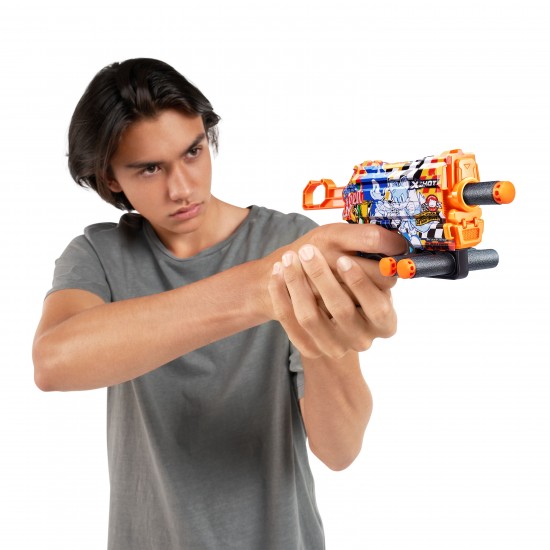 Alege Blasterul X-Shot Skins Menace,Sonic Super Speed si alatura-te luptei! Acest blaster nu trebuie sa lipseasca din colectia ta. Are stocare inferioara pentru sageti, astfel incat sa il puteti reincarca rapid si sa va intoarceti in lupta. X-Shot Skins dispun de noua tehnologie Air Pocket pentru impuscaturi mai rapide, mai lungi si mai precise.