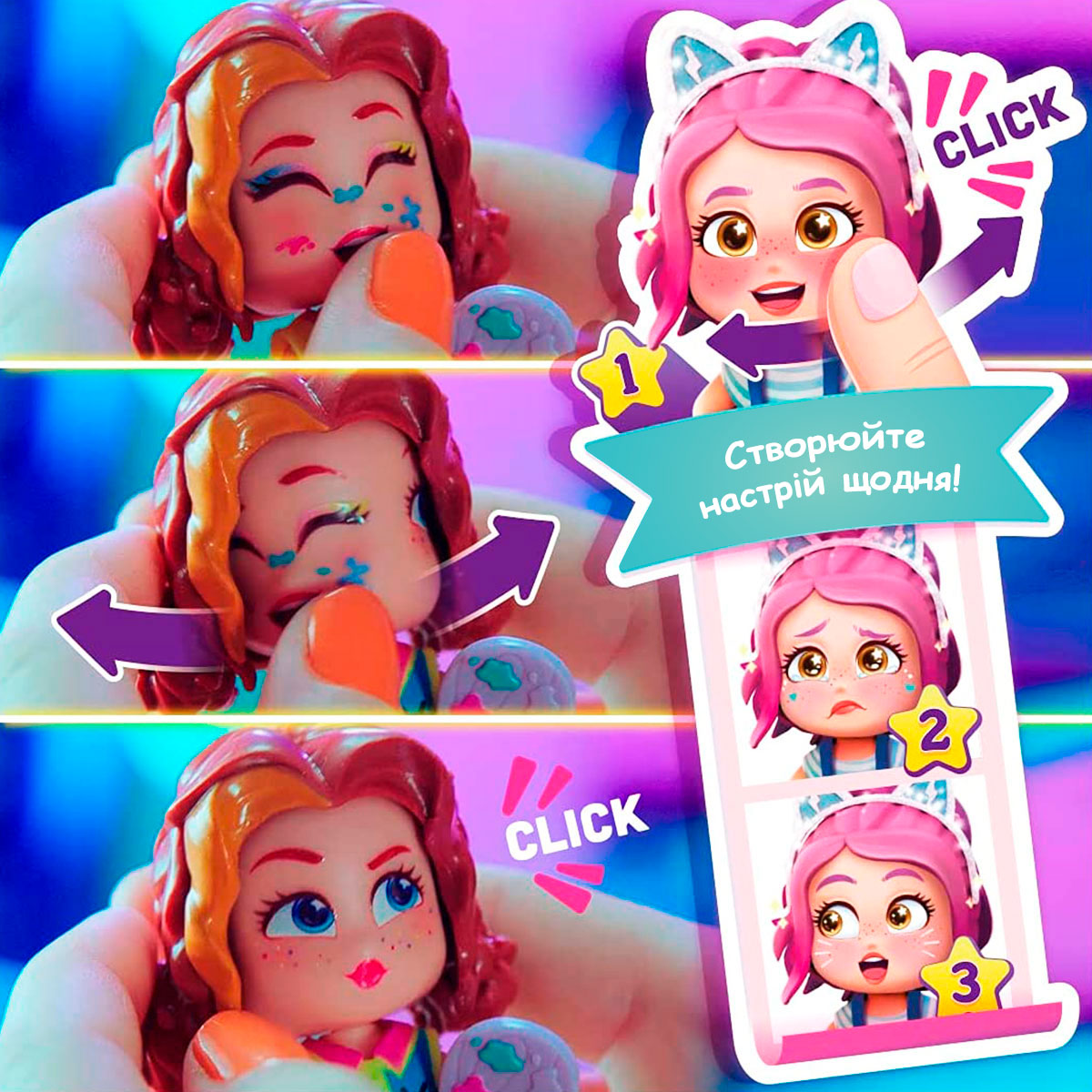 Papusa surpriza cu 3 fete, mascota si accesorii Kookyloos S1