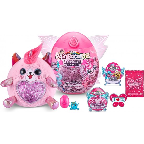 Vei gasi aici o jucarie de plus dornica sa-ti ofere imbratisari moi, un mini ou cu o jucarie surpriza in interior, stickere colorate, o inimia cu slipici senzationala, un pachetel deosebit cu slime, instructiuni si surpriza vestimentara pentru tine - o pereche uimitoare de aripi, pentru a te simti o adevarata zana din povestea magica Rainbocorns.