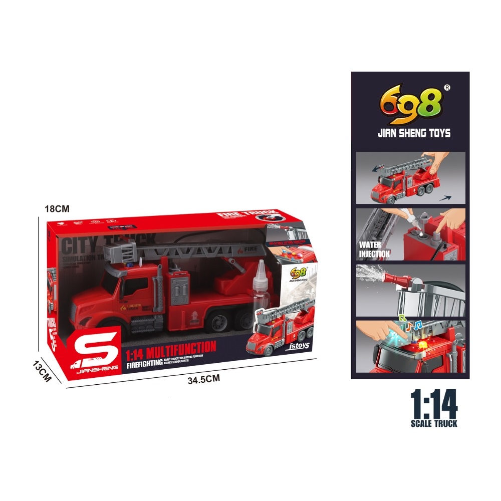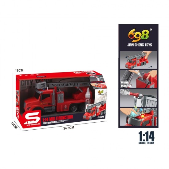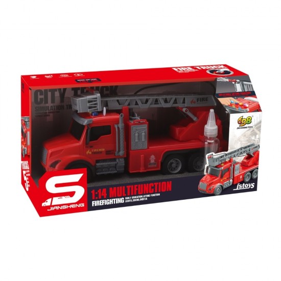 Camion pompieri cu scara, buton apa, frictiune, sunete si lumini, 1:14, jstoys, ZJA363792