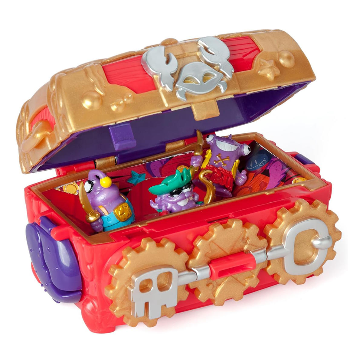 Pentru a deschide cufarul misterios, copiii trebuie sa gaseasca combinatia corecta folosind moneda speciala. Daca reusesc, vor descoperi figurinele Piratix si accesoriile ascunse in interior. Daca nu, monstrul din cufar poate aparea si aventura devine si mai palpitanta.