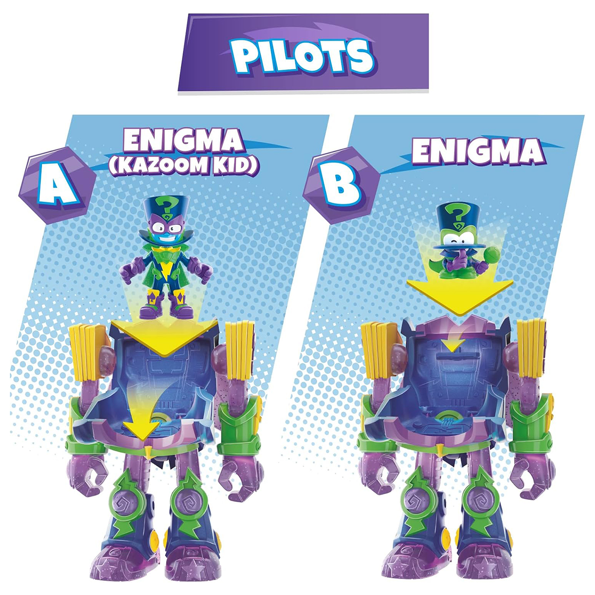 Superbot Enigma a sosit! Apara orasul cu acest nou aliat, plin de energie kazum. El isi deschide aripile si zboara deasupra orasului, mereu gata sa prinda pe oricine provoaca probleme!