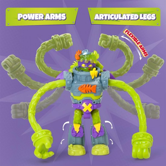 Superbot are mai multe puncte de articulatie si aripi complexe care se deschid cu un buton pe spate.