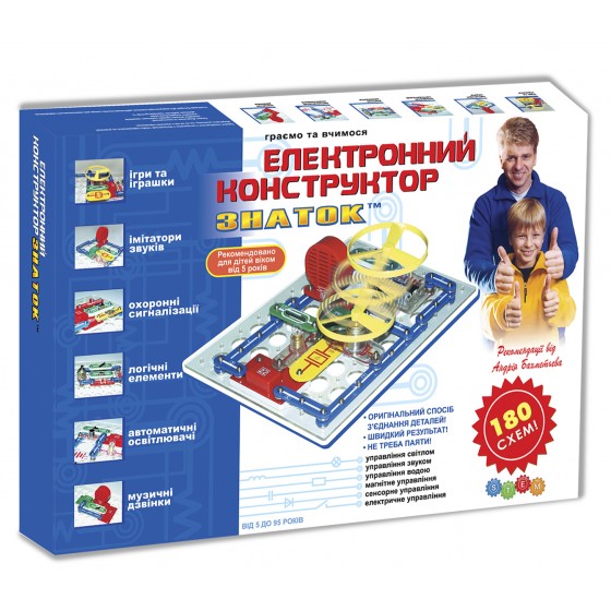 Constructorul electronic ofera posibilitatea copilului de a crea desinestatator soneriile muzicale, semnalizari de securitate, imitatoare de sunete, iluminatoare automatizate, si diferite jocuri si jucarii amuzante. Modul original de asamblare a detaliilor asigura un rezultat rapid si eficient. Setul include si un manual de utilizare cu ajutorul caruia copilul va putea sa asambleze 180 de scheme electronice, ce va permite prin intermediul practicii sa invete gestionarea elementara electricitatatii , sonorizarii si apei. Constuctorul a fost autorizat de catre scoli si alte institutii de invatamint si a fost inalt apreciat de catre specialisti.