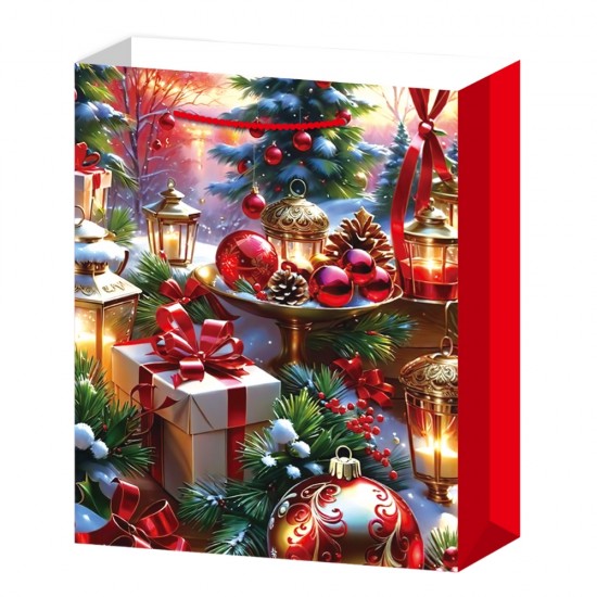 Punga cadou de Craciun este perfecta pentru a adauga un strop de festivitate darurilor tale. Aceasta punga este decorata cu motive specifice sarbatorilor de iarna, oferind un aspect elegant si vesel. Materialul este rezistent, asigurand ca punga sa poata sustine greutatea cadourilor.