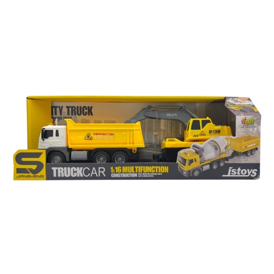Camion basculanta cu inertie, remorca excavator, sunete si lumini, 1:16, jstoys, ZJA327088
