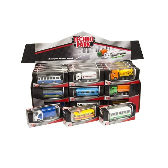 36 de modele metalice, ale serviciilor de oras de 9 tipuri. Cu un astfel de cadou, copilul va incepe sa colecteze masini, copiile exacte ale carora pot fi vazute in oras. Printre modele se enumera: - un autobuz, un troleibuz, un camion de gunoi, un mixer de beton, un tren, un metrou, un camion, un tir, un tramvai.
