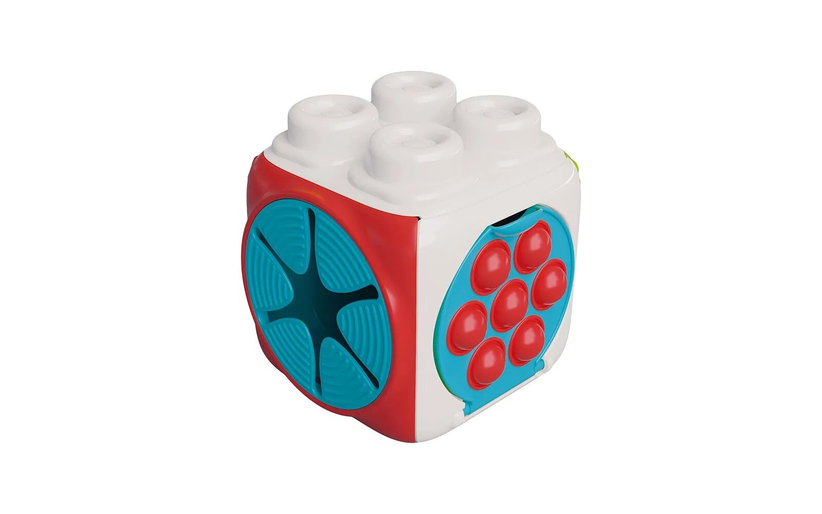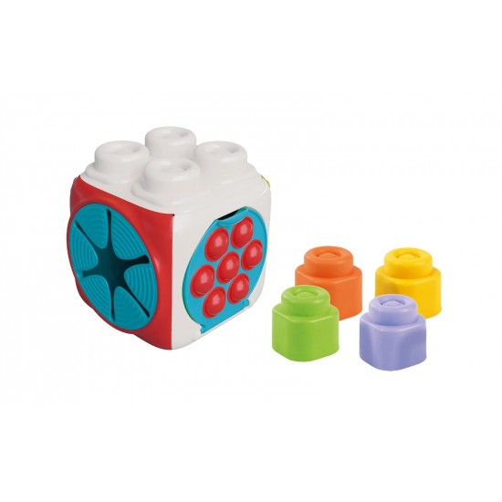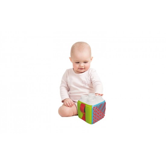 Formele reliefate, culorile vii si partile flexibile ajuta la dezvoltarea coordonarii mana-ochi, a motricitatii fine si a perceptiei senzoriale. Cubul este usor, sigur si ideal pentru joaca zilnica acasa sau in deplasare.
