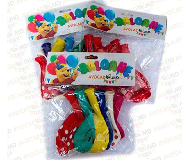 Baloane latex rotunde 25 cm 6 buc vii colorate cu desene imprimate. Diverse culori si desene.
