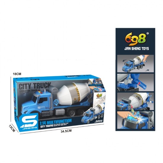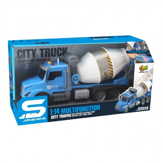 Camion betoniera albastra cu frictiune, sunete si lumini, 1:14, jstoys, ZJA363778