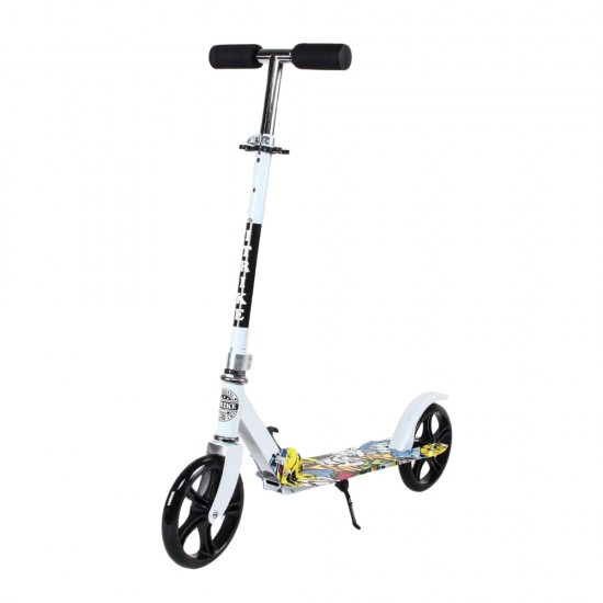 Un model de trotineta pliabila in nuantele de alb-negru, perfecta pentru micii exploratori. Aceasta vine echipata cu doua roti si cric, care adauga un plus de distractie si siguranta in timpul plimbarilor. Designul vibrant si detaliile atragatoare o fac usor de remarcat. Trotineta este ideala pentru copii care doresc sa se bucure de timpul liber in aer liber.