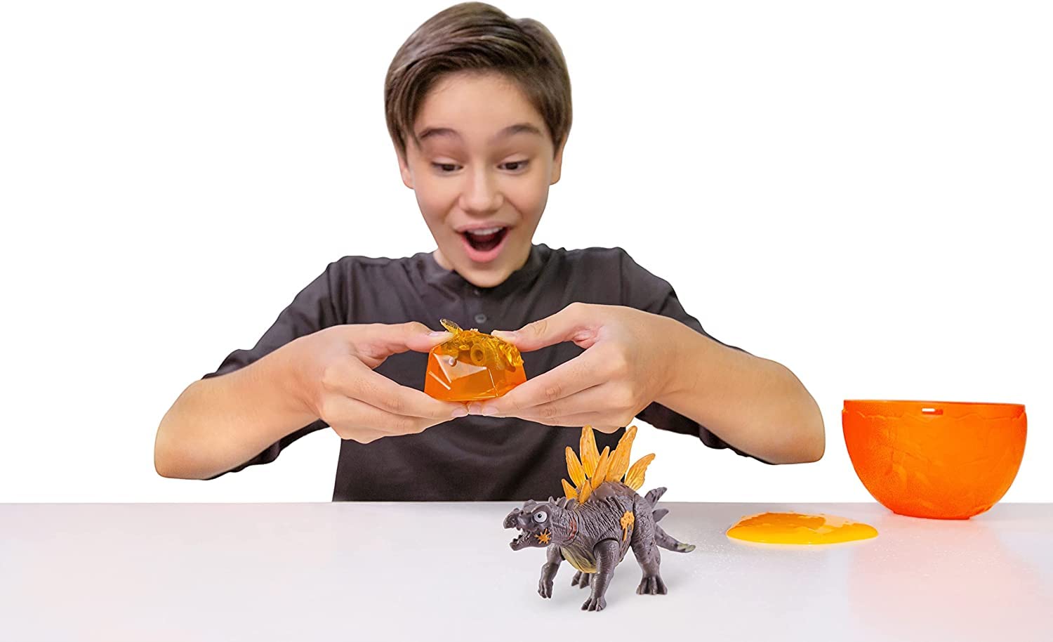 Setul include: 1 ou mini de dinozaur, 1 figurina dinozaur de asamblat, 2 pachetele cu slime, 1 instructiuni, 1 ghid al colectionarului.