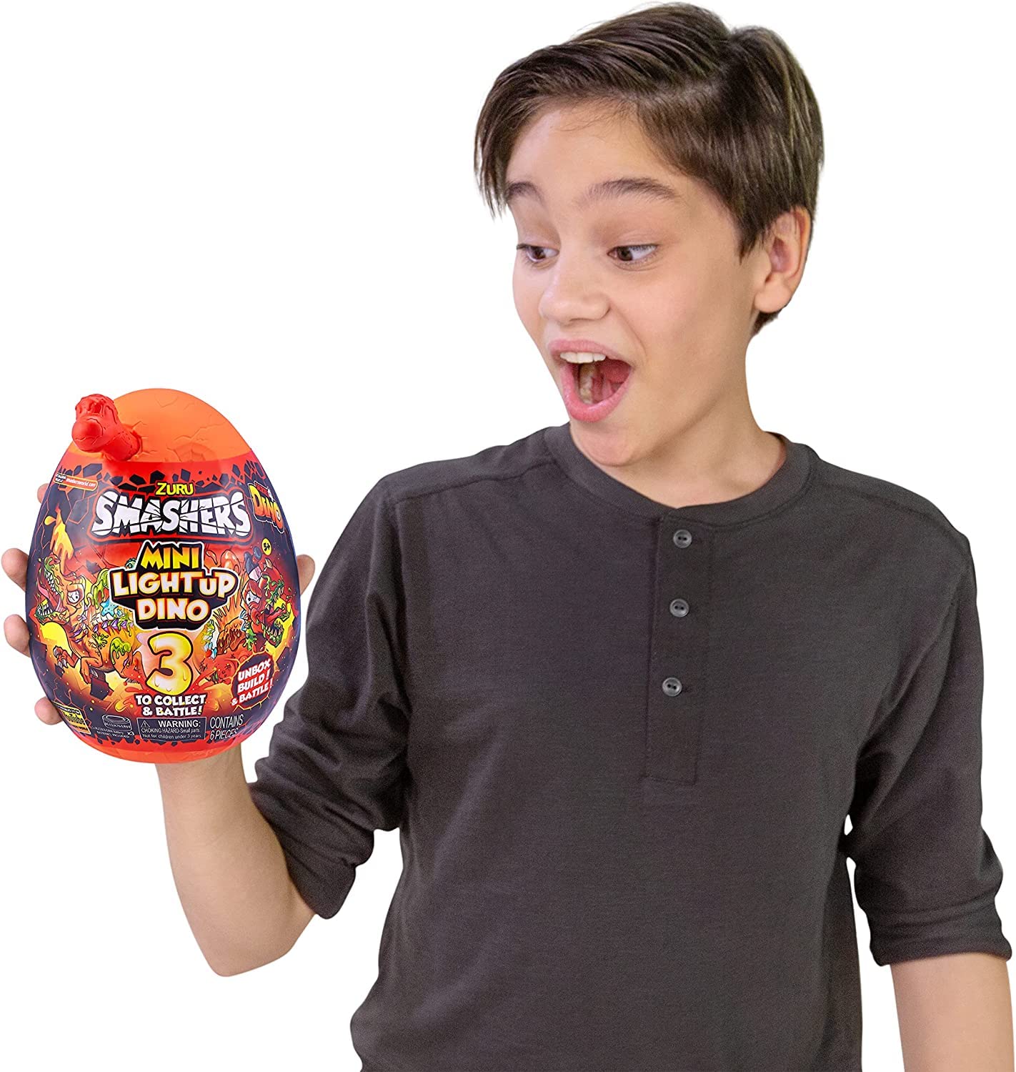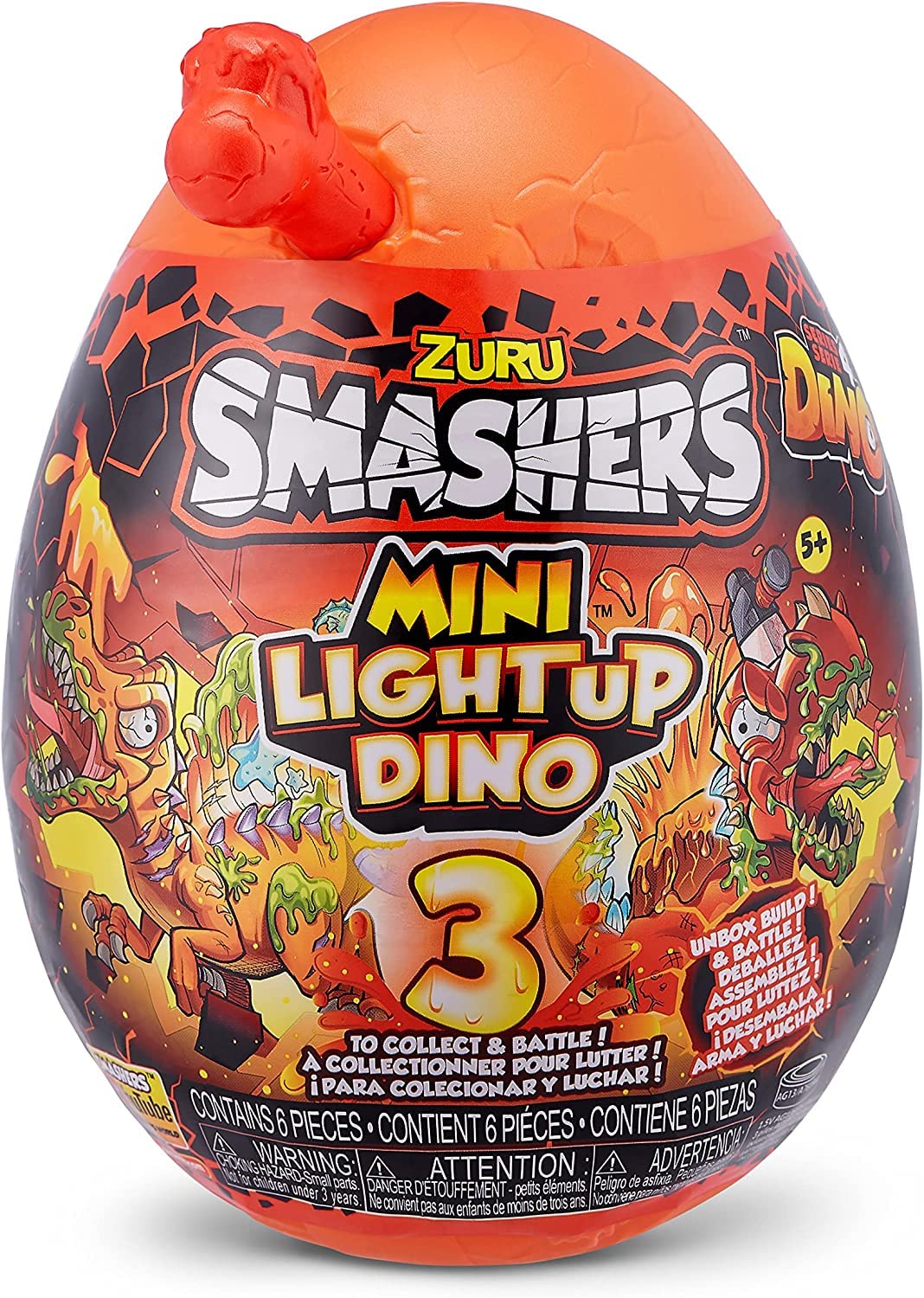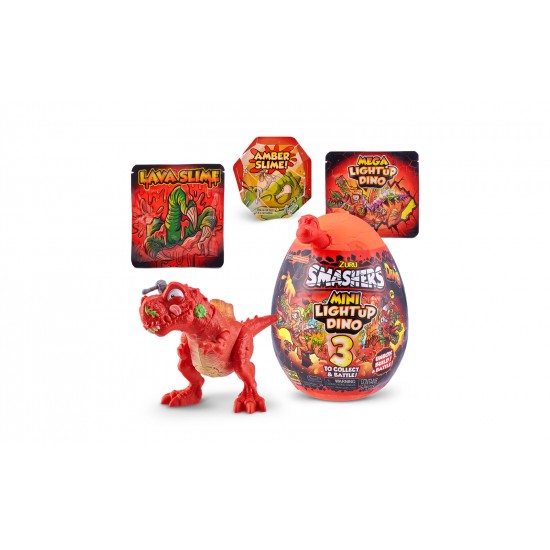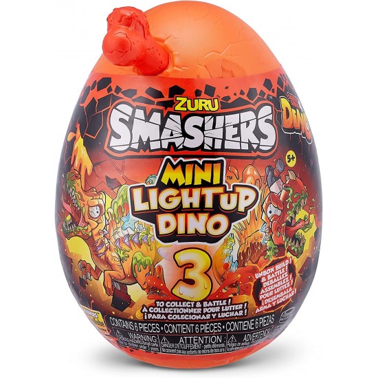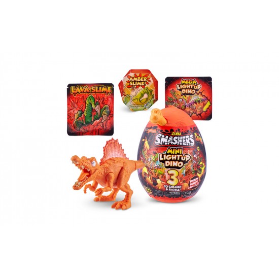 Figurina dinozaur surpriza in ou Smashers - Mini Dino Light-Up S4, 13 cm, 3 tipuri ZURU