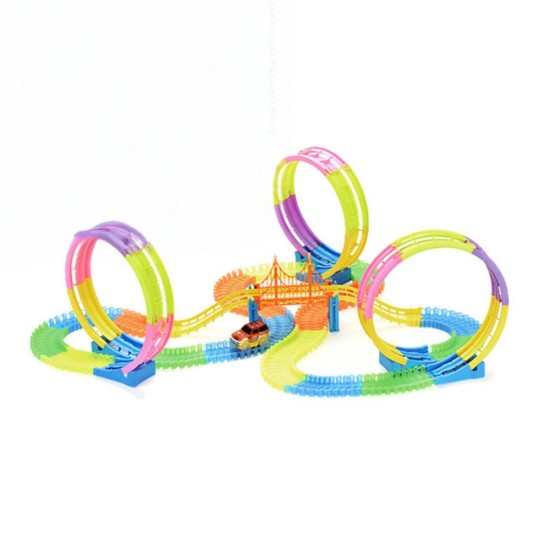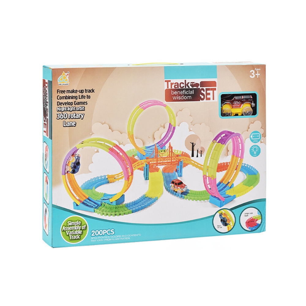 Set traseu fosforescent de construit cu masinuta si 3 bucle, 200 el., ZJA224372