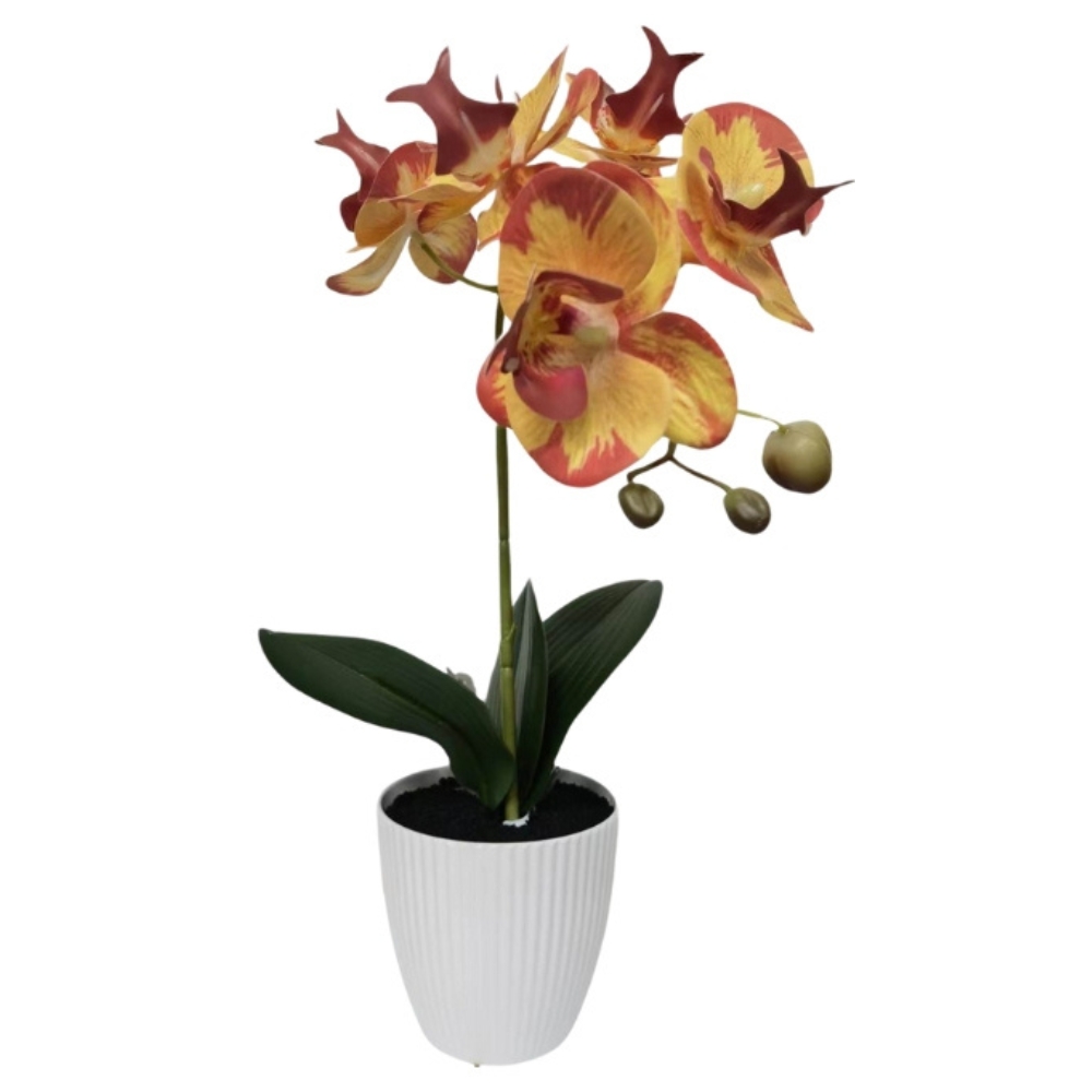 Orhidee artificiala galben-roz inchis in ghiveci 37 cm PEVA, ZJA361813