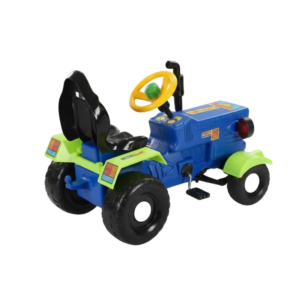 Datorita dimensiunilor compacte (77x47x37 cm), tractorul este usor de utilizat si manevrat de catre cei mici. Sistemul de pedale ajuta la dezvoltarea musculaturii picioarelor si a coordonarii, transformand joaca intr-o activitate benefica si educativa.