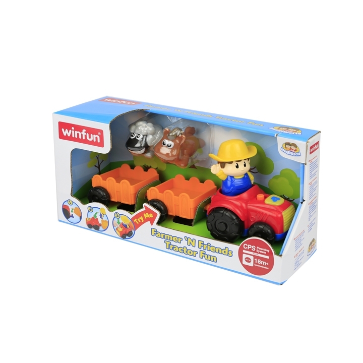 Jucarie Tractor cu remorca, figurine fermier si animale, sunete si lumini, Winfun