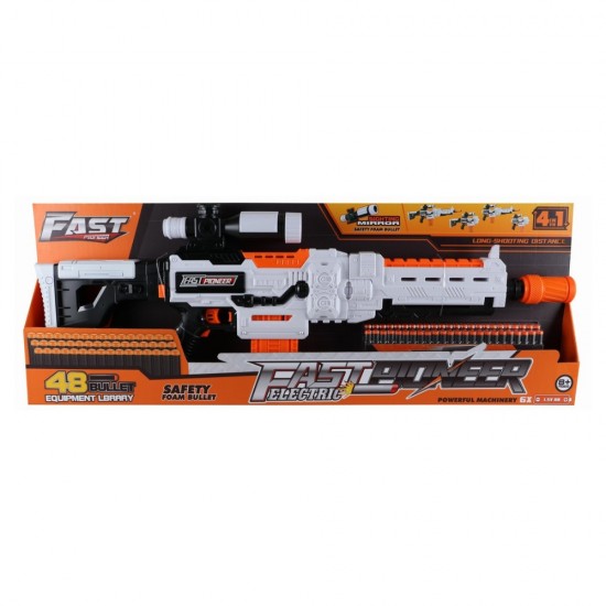 Pusca cu luneta de jucarie, electrica, cu gloante din spuma, 48 proiectile, Fast Pioneer