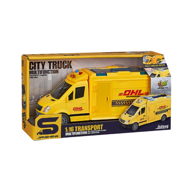 Microbuzul galben JS126F pentru servicii postale este o jucarie interactiva si educativa, ideala pentru copiii pasionati de vehicule utilitare. Realizat la scara 1:16, modelul este echipat cu mecanism cu frictiune, usi care se deschid, precum si efecte sonore si luminoase care imita functionarea reala a unui vehicul postal. Designul realist si culoarea vizibila transforma acest microbuz intr-o alegere excelenta pentru jocuri de rol si dezvoltarea imaginatiei.