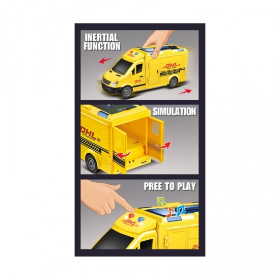 JS126F Microbuz galben servicii postale cu frictiune si usi care se deschid, sunete si lumini, 1:16, JSTOYS, ZJA329910