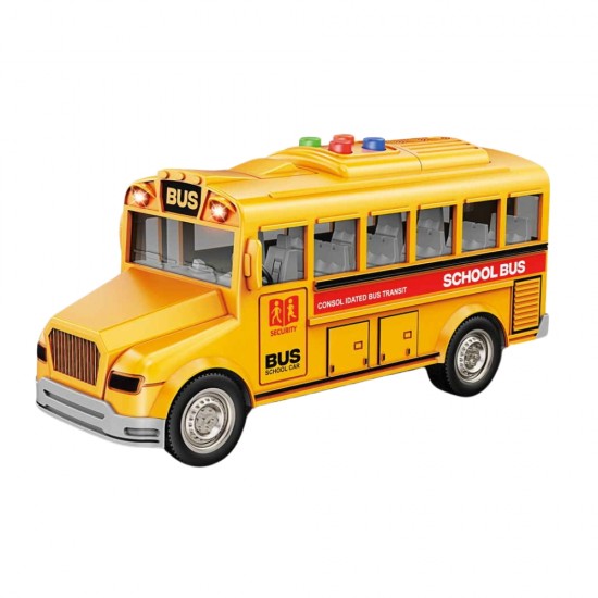 Autobus scolar cu sunete si lumini, este o jucarie interactiva la scara 1:20, destinata copiilor pasionati de jocuri atractive.